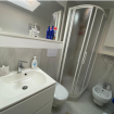 La casa è dotata di tre bagni eleganti, tutti con finiture di alta qualità. Qui troverete ampie docce e spazi pensati per garantire praticità e benessere durante il vostro soggiorno.